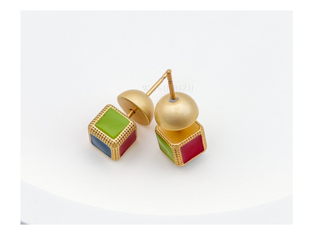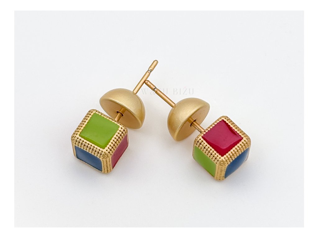 Barevné smaltované pecky ve tvaru kostky. Hravý, originální a elegantní doplněk, který rozzáří každý den.