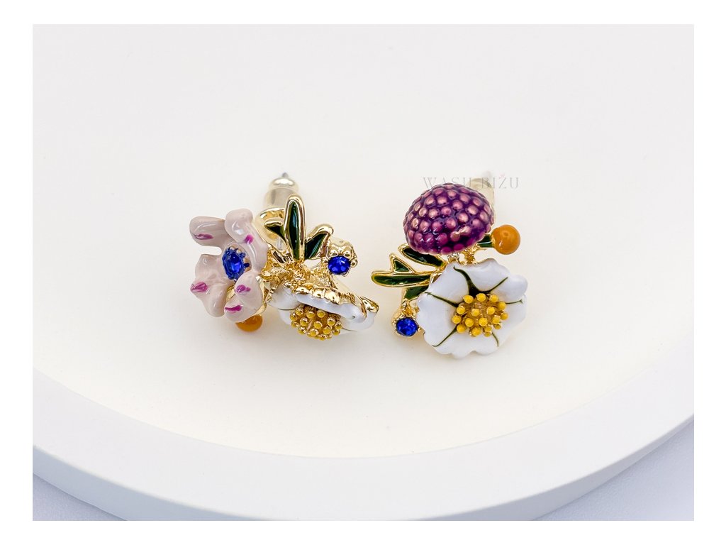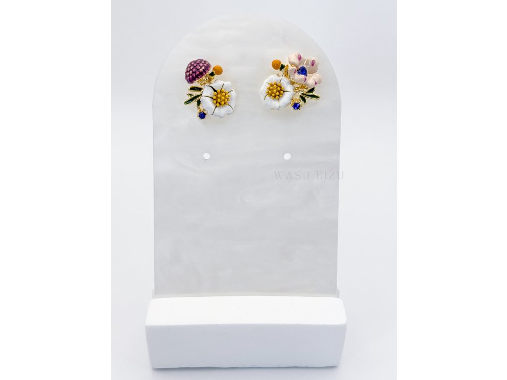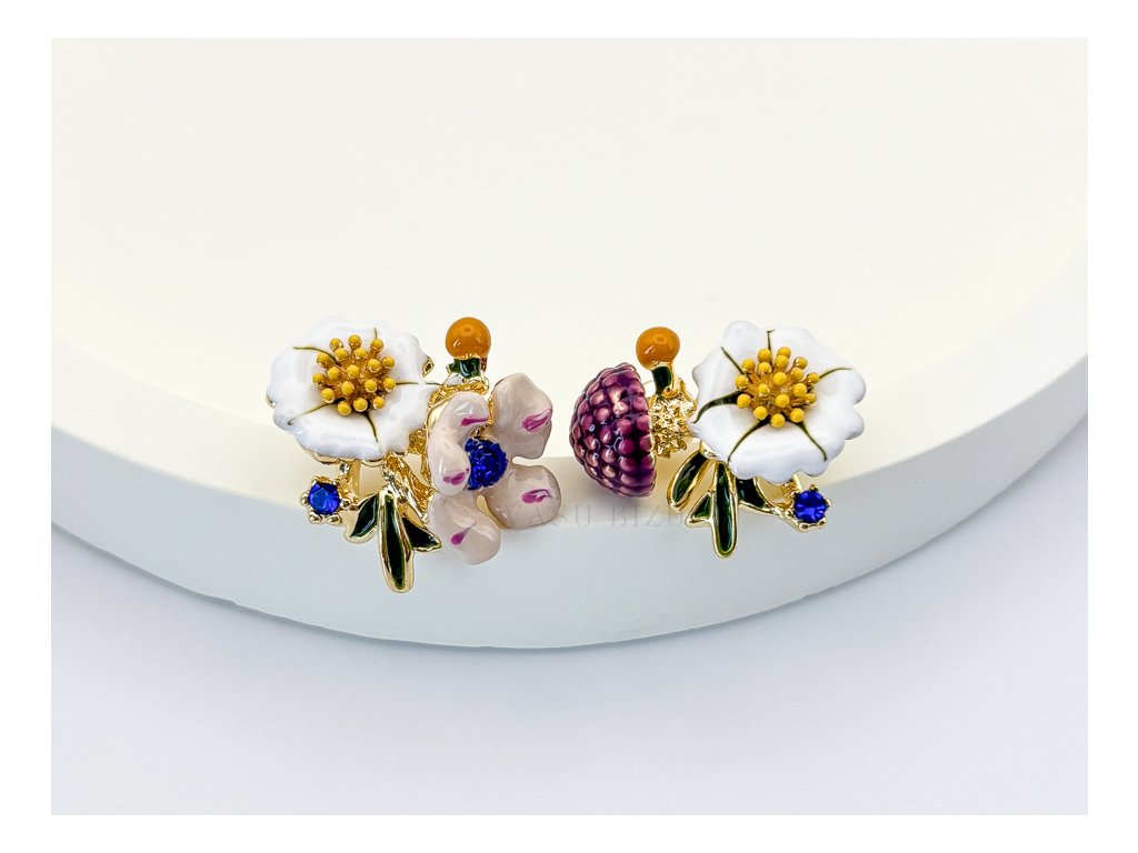 Originální květinové náušnice s malzovanou glazurou a zirkony. Umělecký šperk plný barev, který rozzáří každý den.