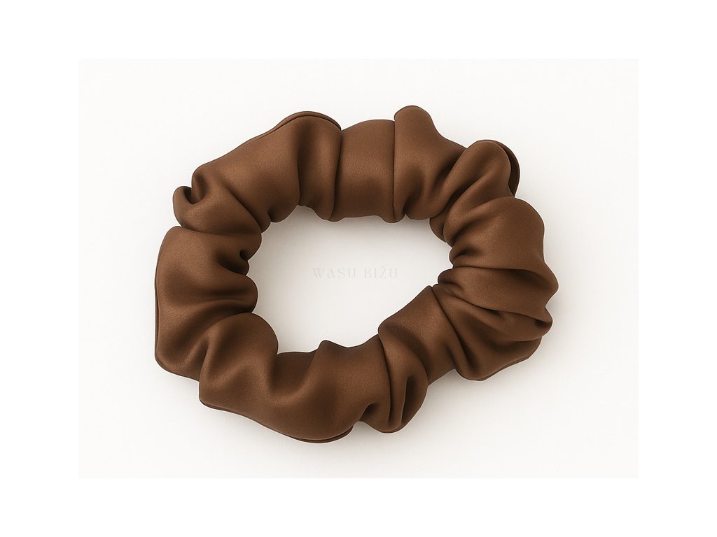 Elegantní hedvábná gumička scrunchie v hnědé barvě pro jemný a stylový účes.
