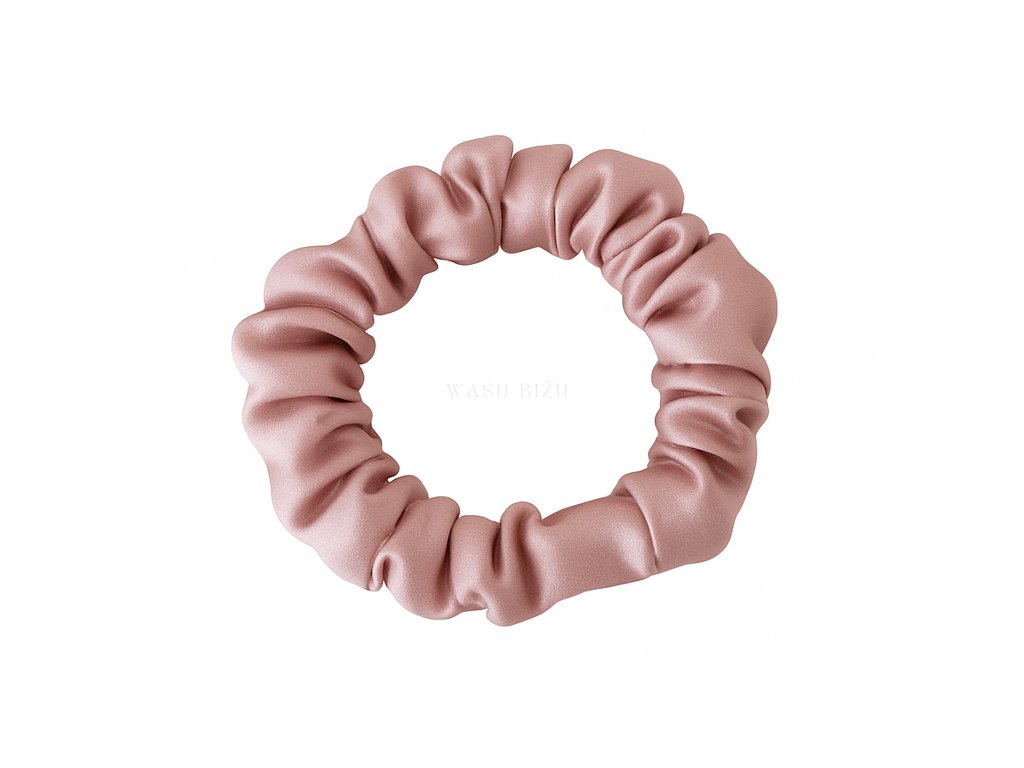 Luxusní hedvábné scrunchie v růžové barvě o šířce 1,5 cm, které jemně drží vlasy a přináší elegantní a sofistikovaný vzhled.