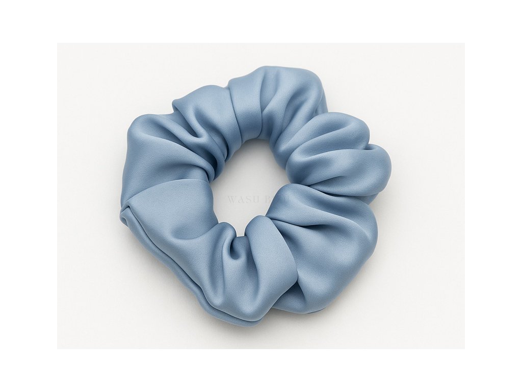 Hedvábná gumička do vlasů v jemné obloze modré barvě, která přidá nádech elegance každému účesu.