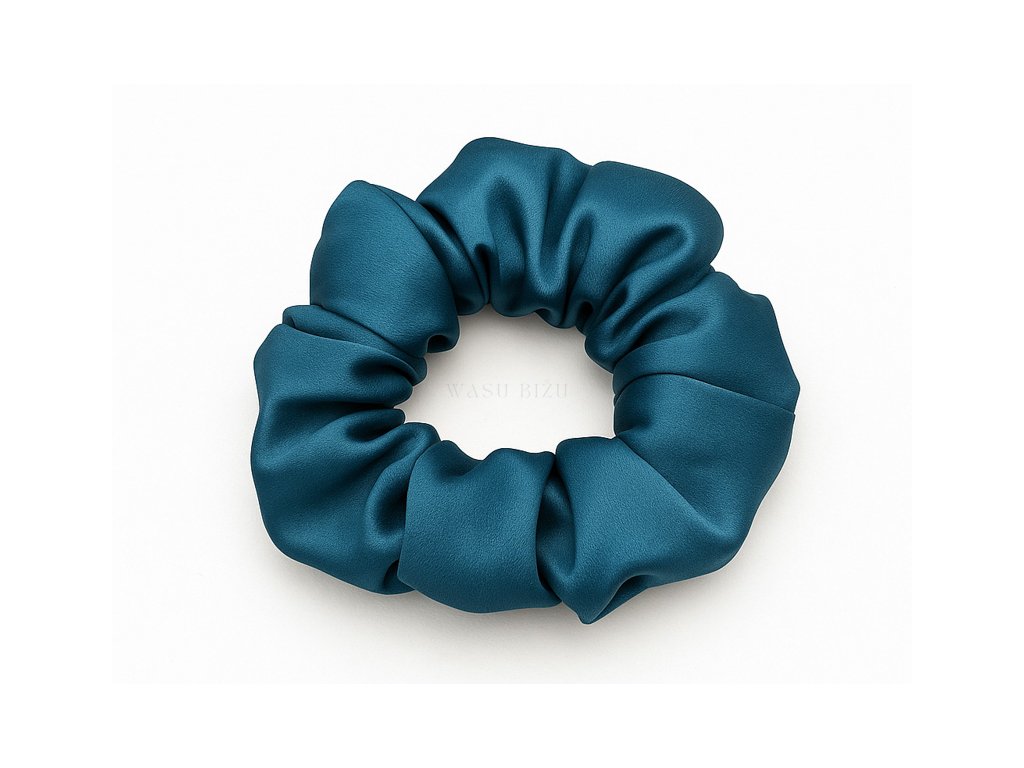 Hedvábná gumička scrunchie 30mm v pávové modré barvě 3.5cm