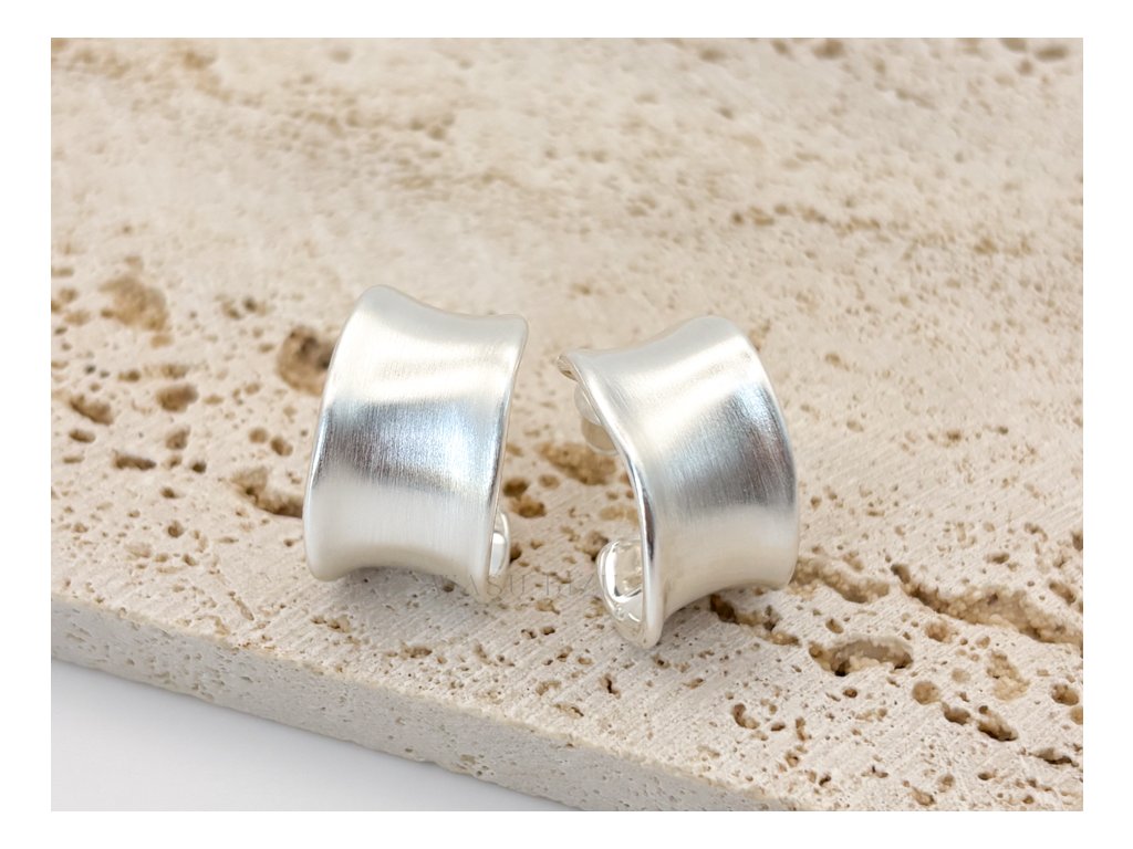 Stříbrné náušnice s jemně tvarovaným designem a kombinací matného a lesklého povrchu. Elegantní doplněk, který nikdy nevyjde z módy.