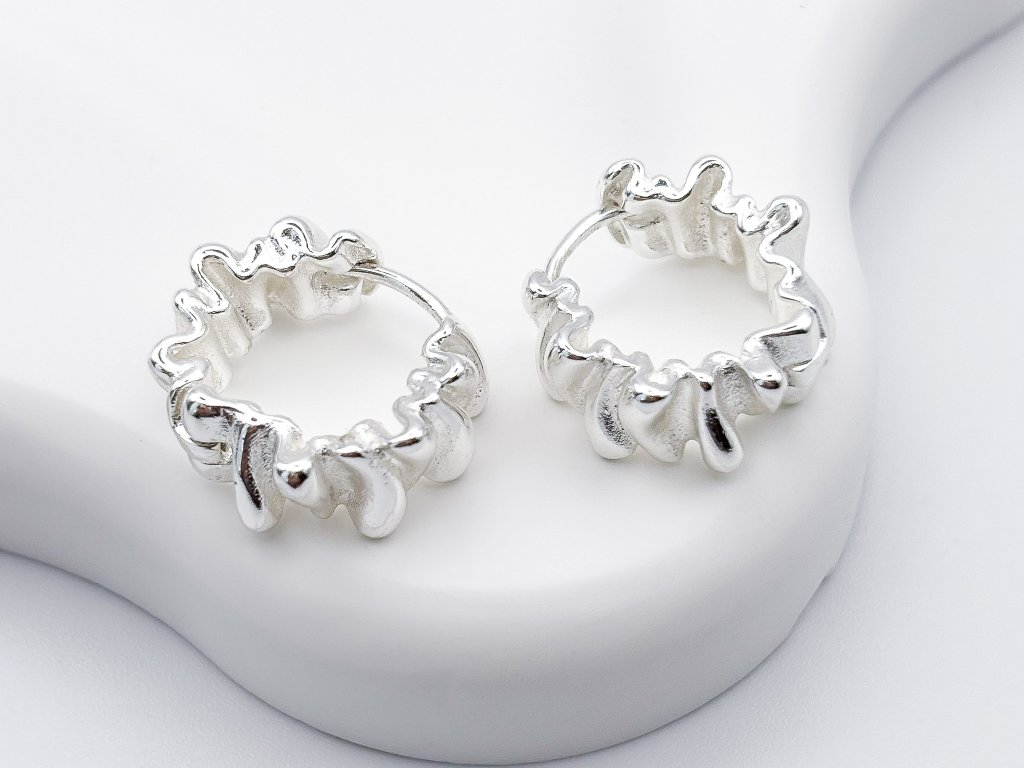 Stříbrné kruhové náušnice s vlnitým plastickým povrchem. Originální a elegantní doplněk, který zaujme svou jemnou strukturou.