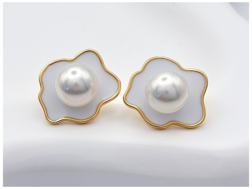 Tyto zlaté pecky jsou inspirované tradičním motivem volského oka. Jsou vyrobené z mosazi s pozlacením a ozdobeny říční perlou, která je obklopena jemně smaltovanou glazurou. Tento design přináší spojení elegance a symboliky. Zapínání je puzeta z kvalitního stříbra 925, což zaručuje pohodlné a bezpečné nošení. Tyto náušnice jsou ideální pro každodenní nošení i pro speciální příležitosti.